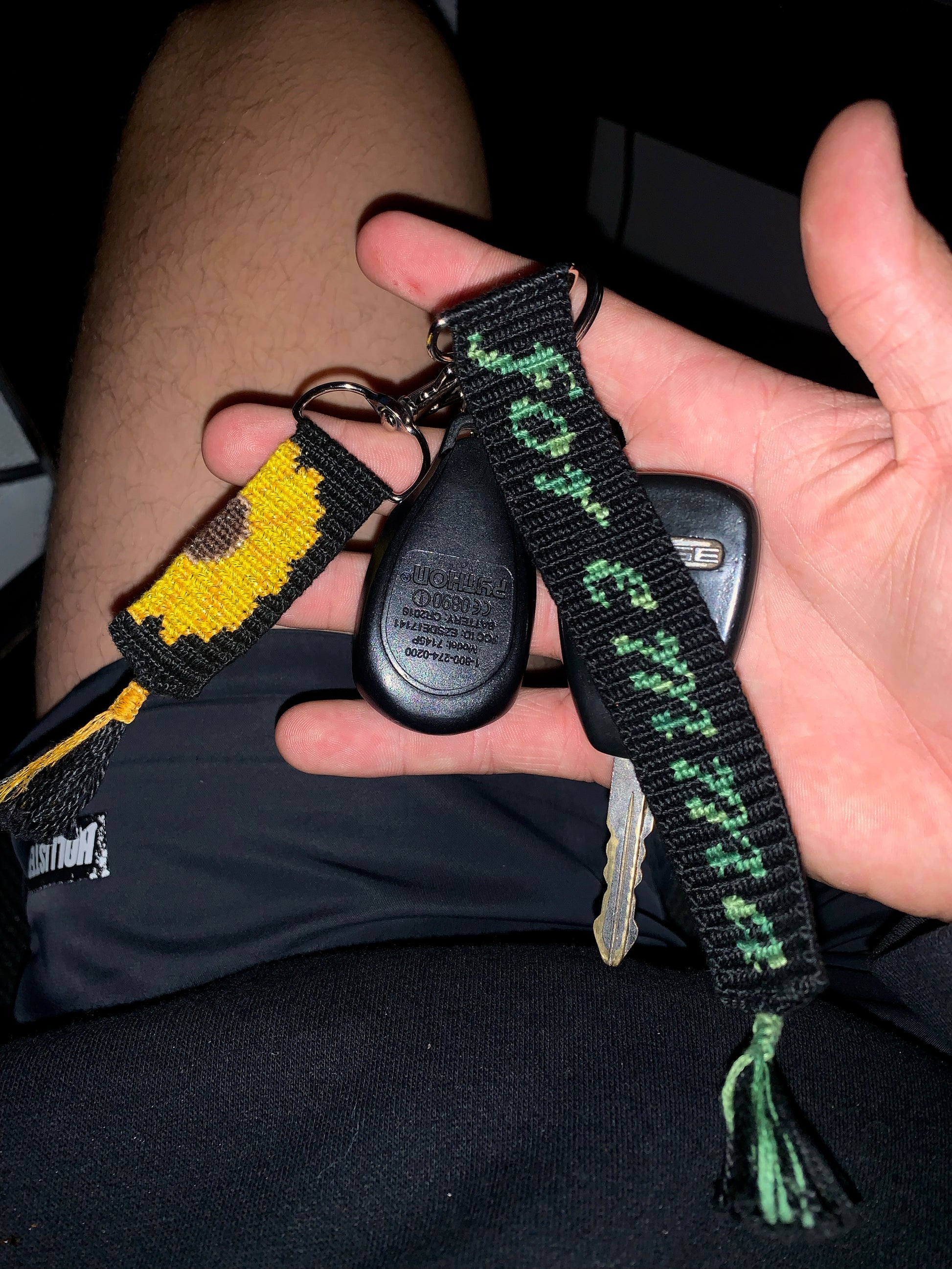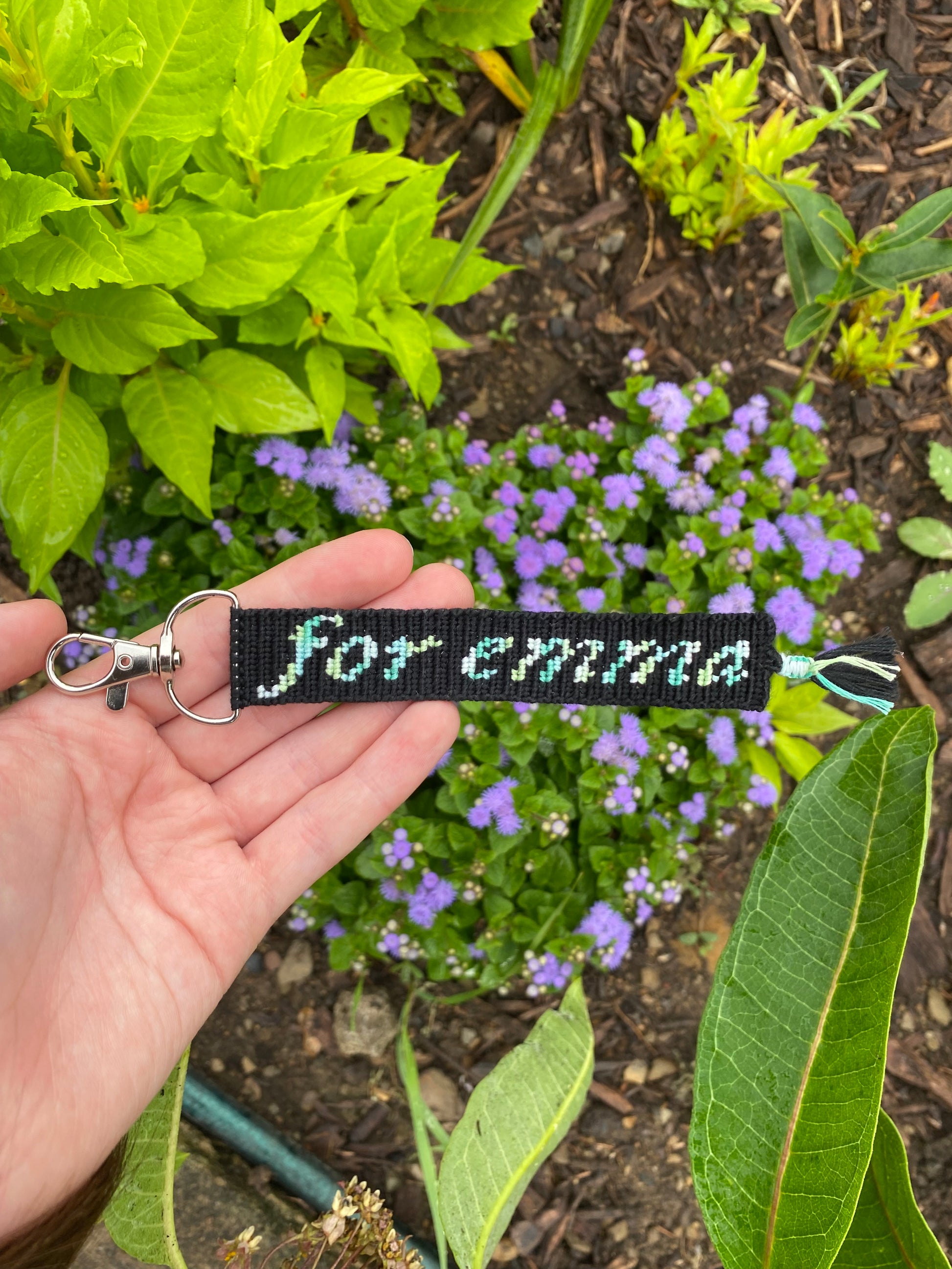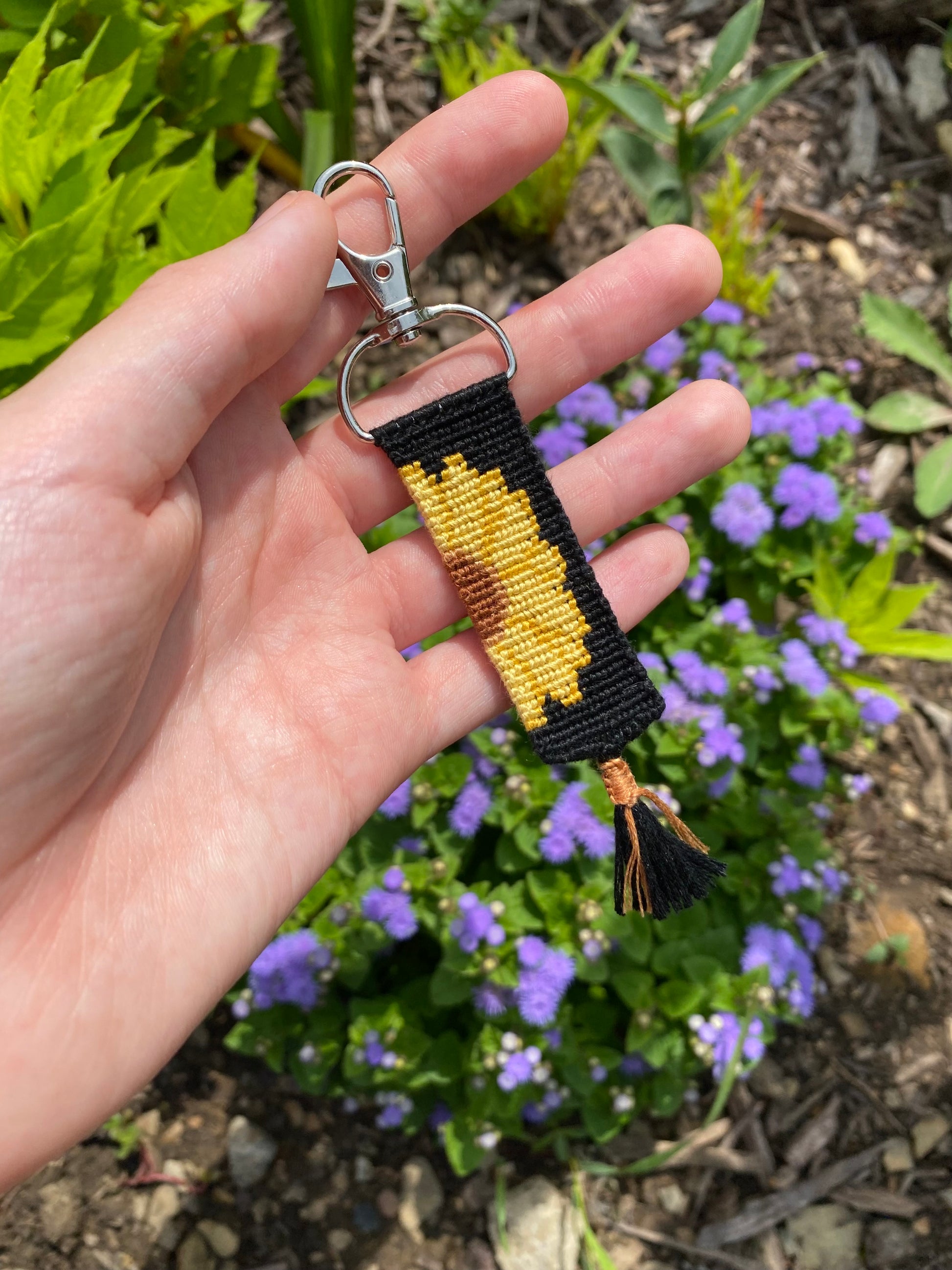 -(1) Custom "for emma" knotted keychain (with surprise colors) and (1) custom sunflower knotted keychain (same colors without sparkle)