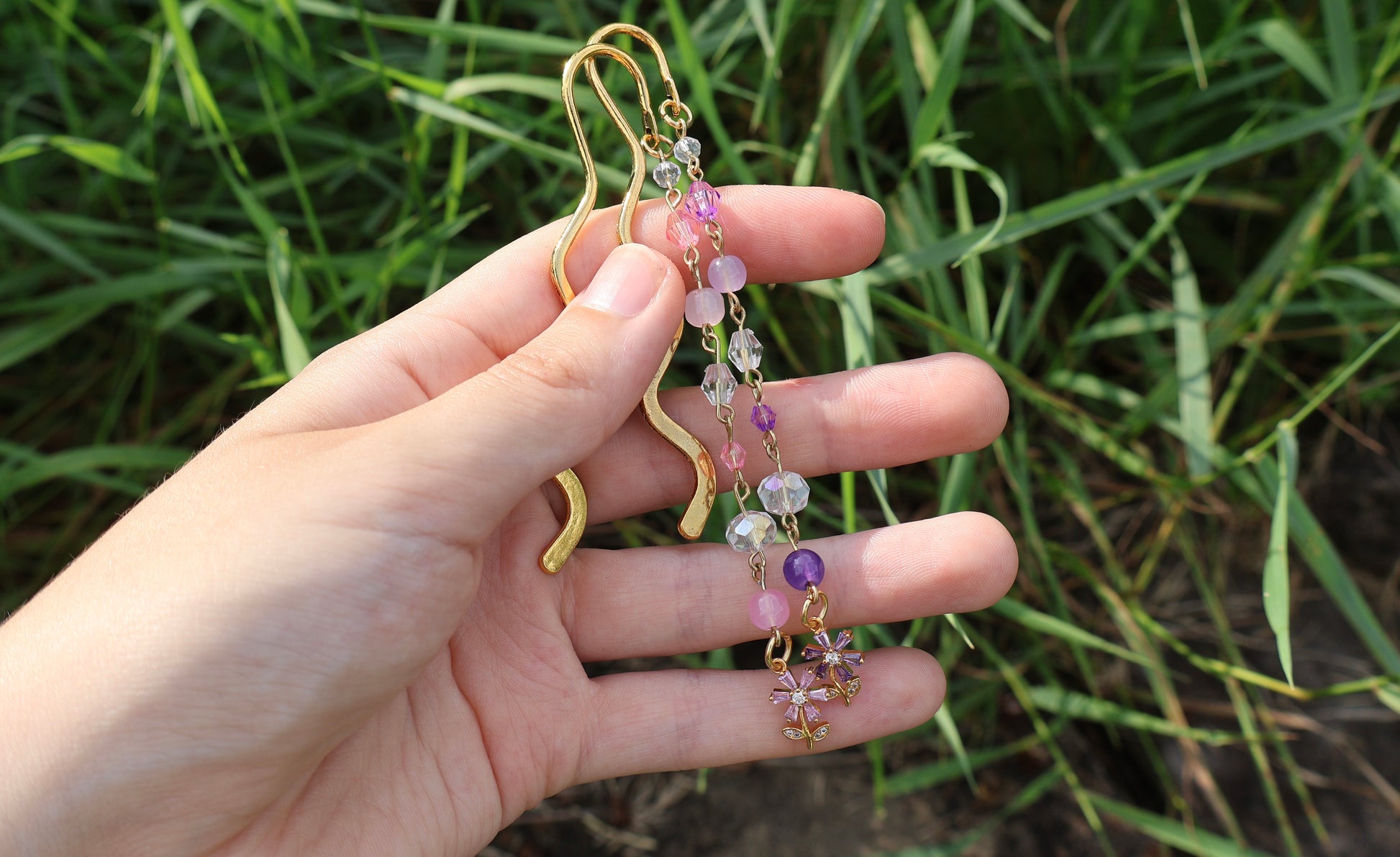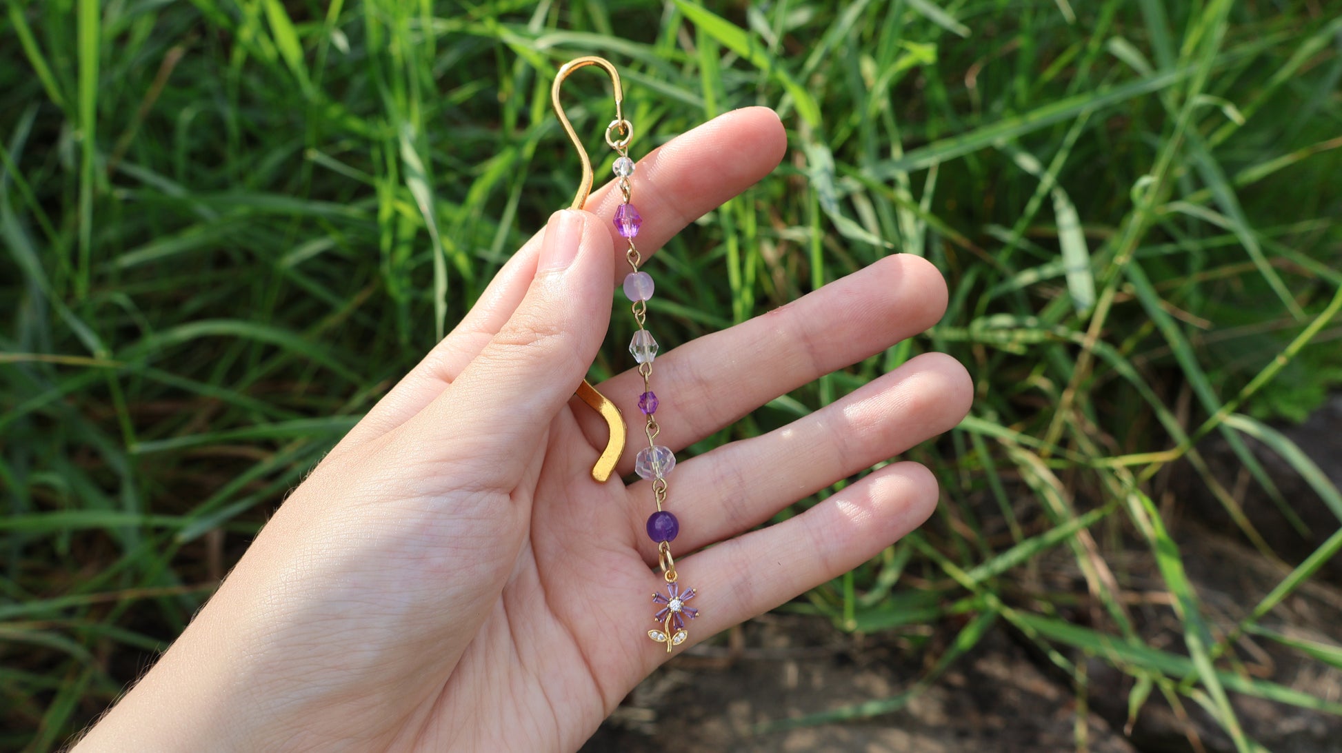 Gold Flower Beaded Wavy Bookmark in Pink or Purple