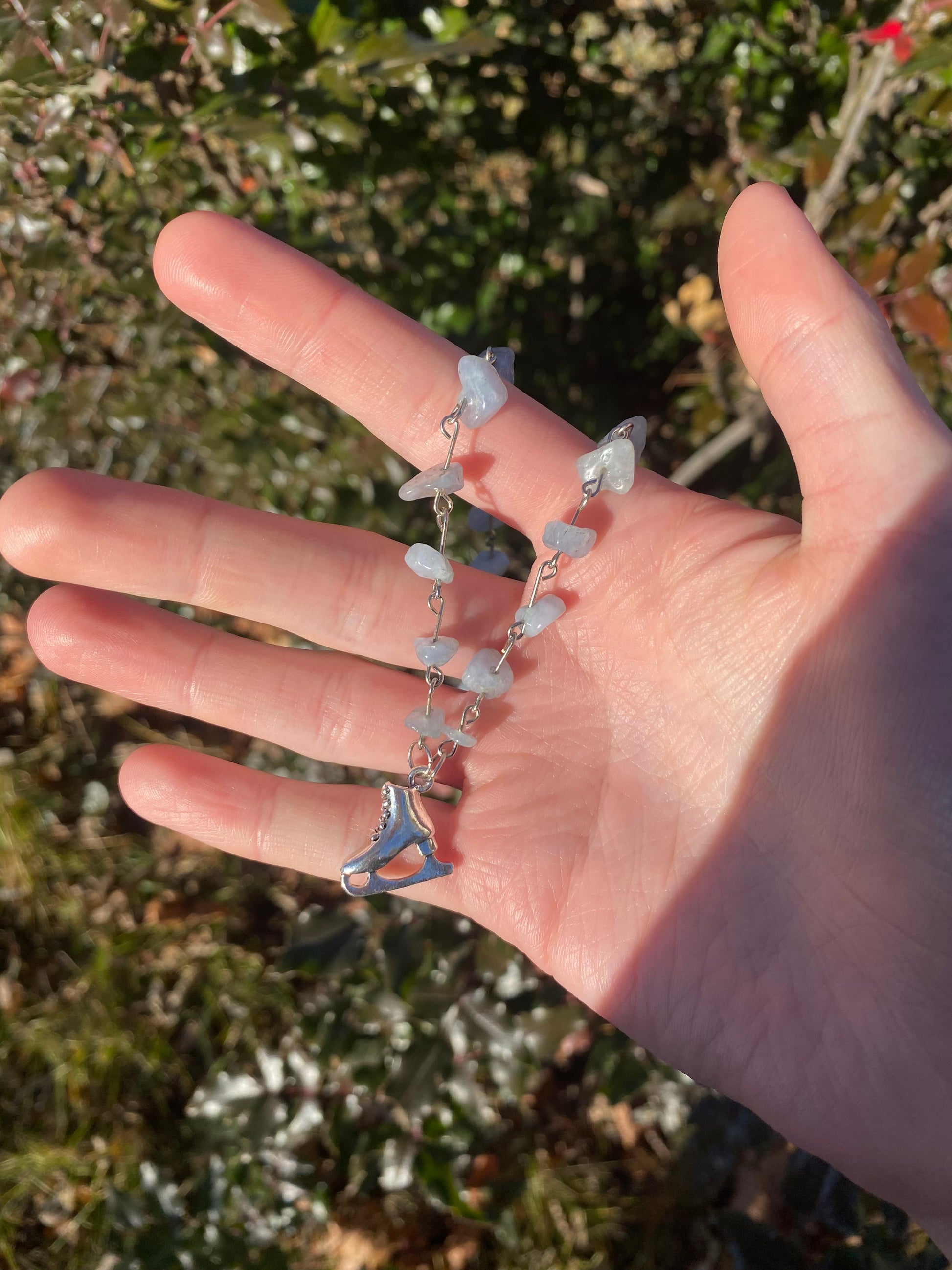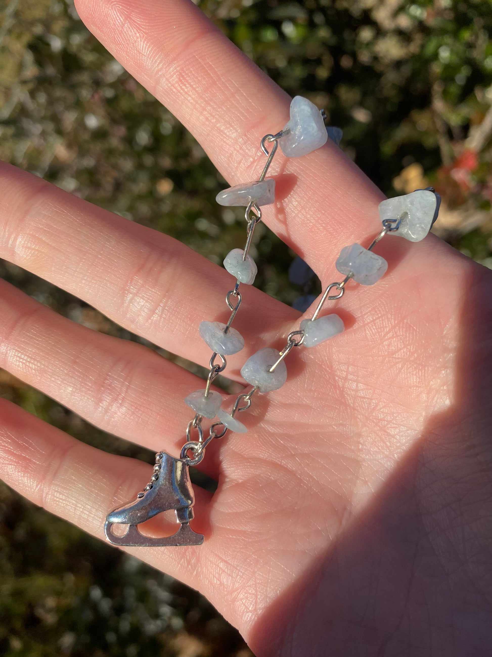 Ice Figure Skating Aquamarine Gemstone Silver Charm Necklace