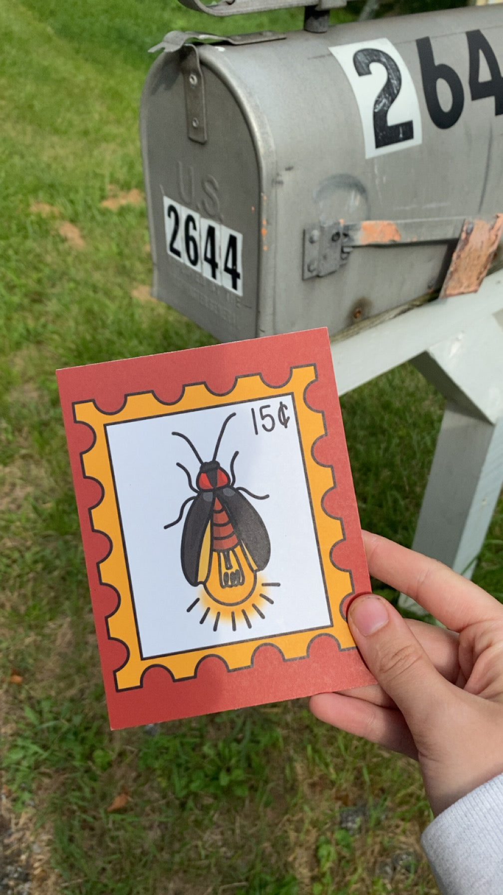 Lightning Bug/Fire Fly Postage Stamp Inspired Postcard