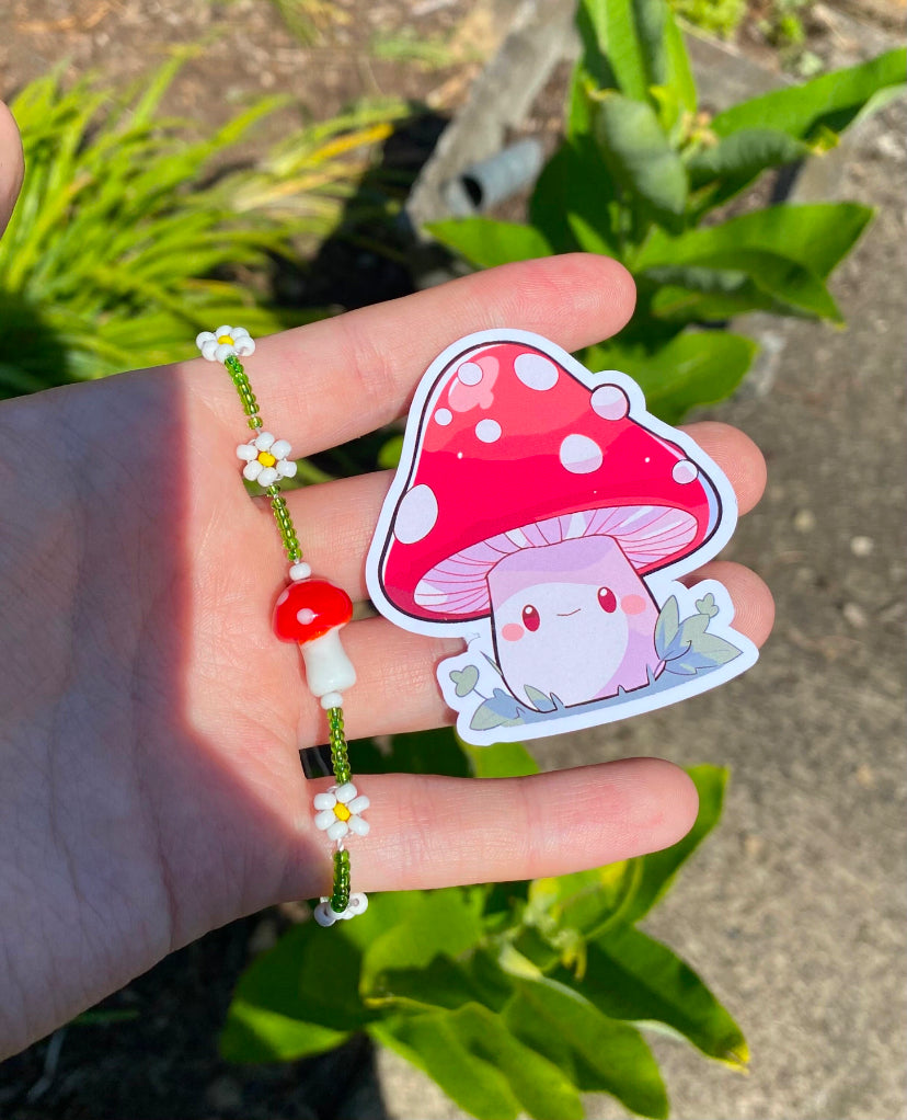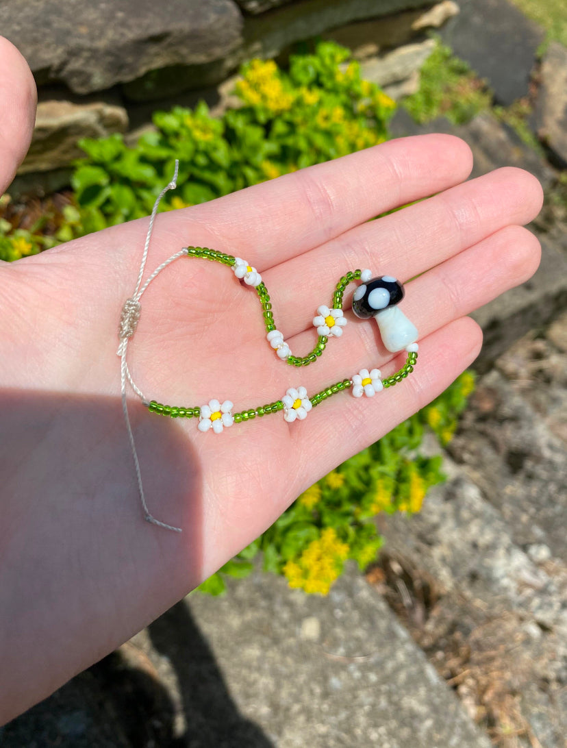 Mushroom and Daisy Beaded Adjustable Friendship Bracelet/Anklet