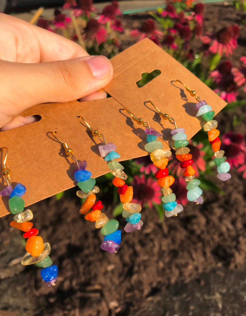 Rainbow Gemstone Chips Gold Dangle Drop Earrings