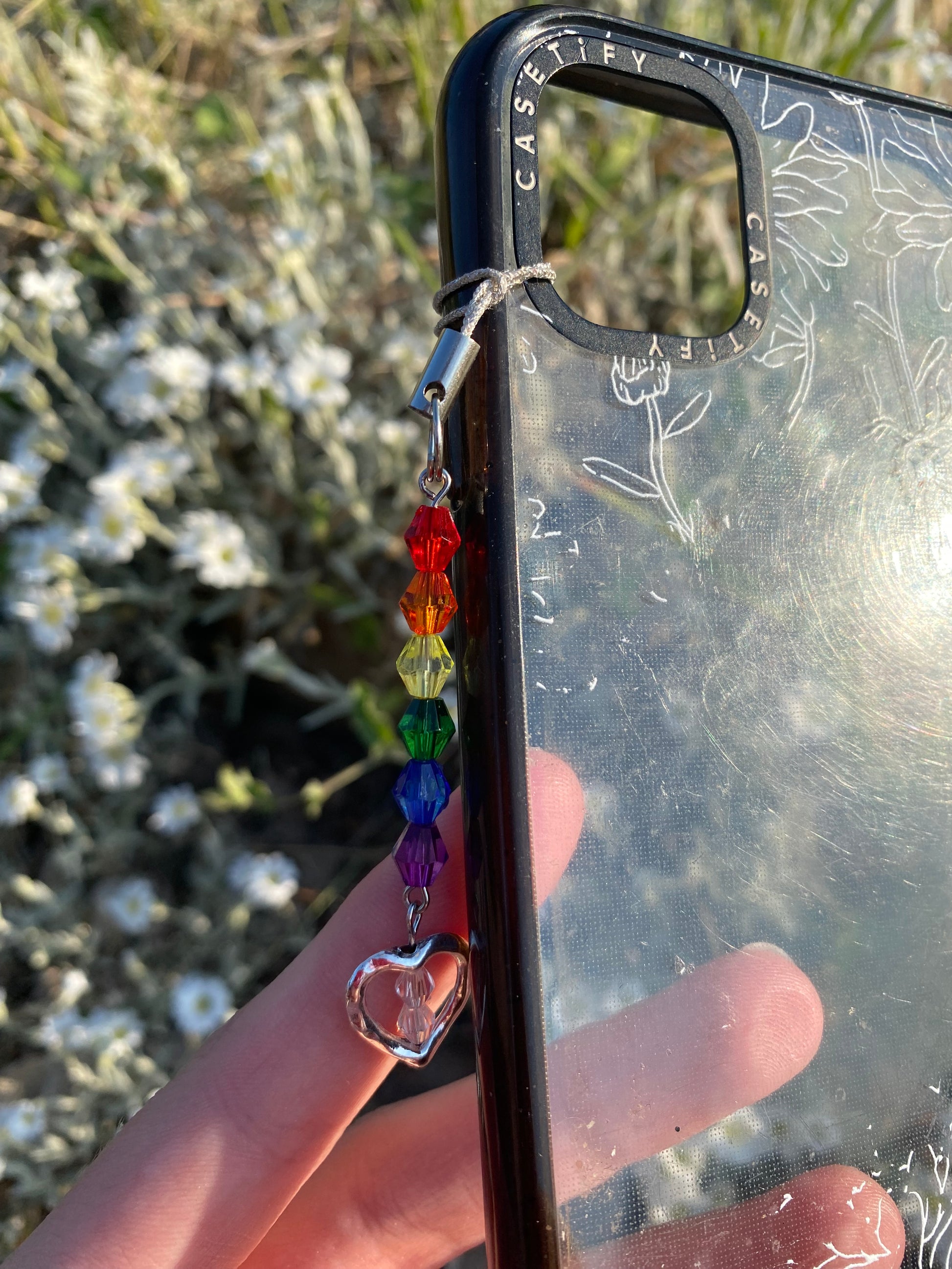 Rainbow Heart Crystal Beads Silver Phone Charm